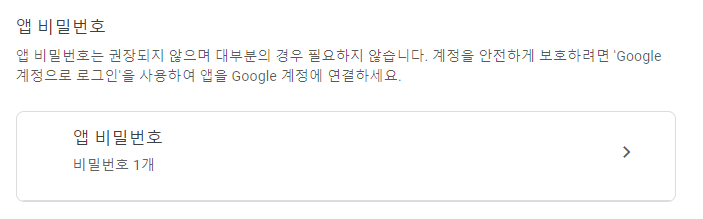 구글 2단계 인증에서 앱비밀번호를 설정해서 16자리의 코드를 넣어주면된다