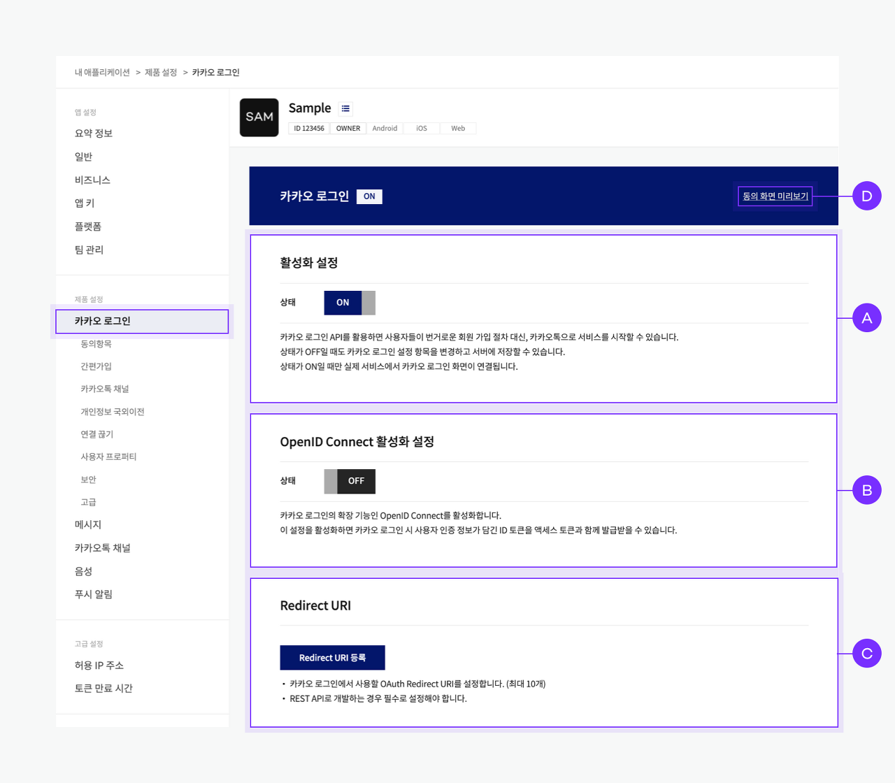 - 10개를 초과하는 Redirect URI 등록이 필요한 경우, 데브톡으로 문의합니다.